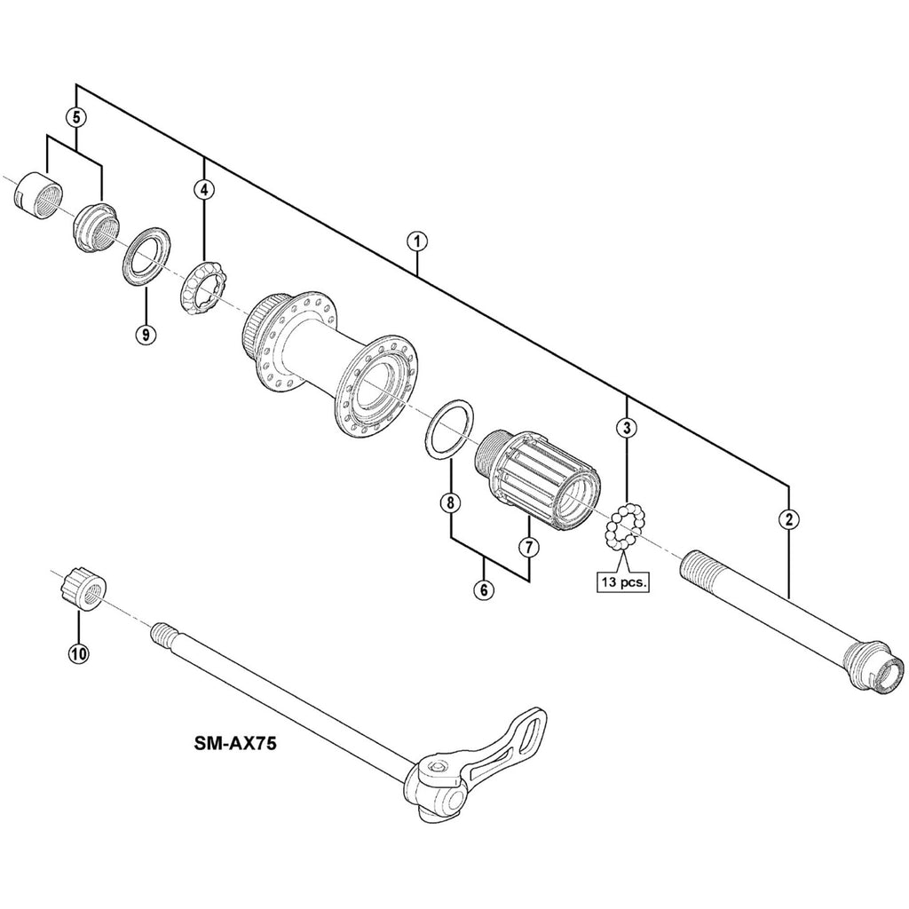 Shimano Spares M988 hub axle unit