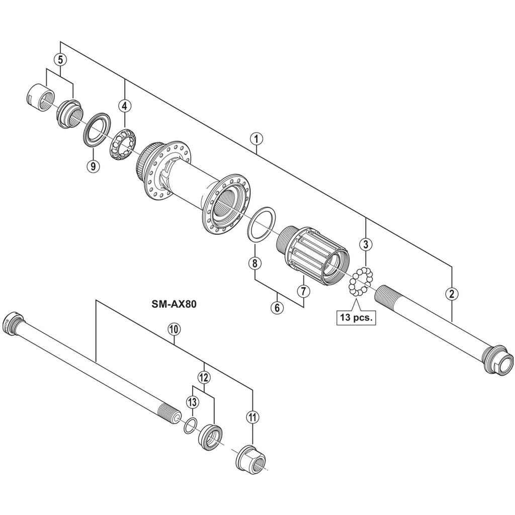 Shimano Spares M645 complete hub axle...