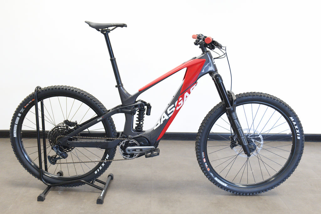 The SRAM components keep coming on the ECC 4 with a 12-speed GX Eagle drivetrain and GX Eagle crank arms, SRAM DB8 brakes sit on 200mm SRAM Centerline rotors.
