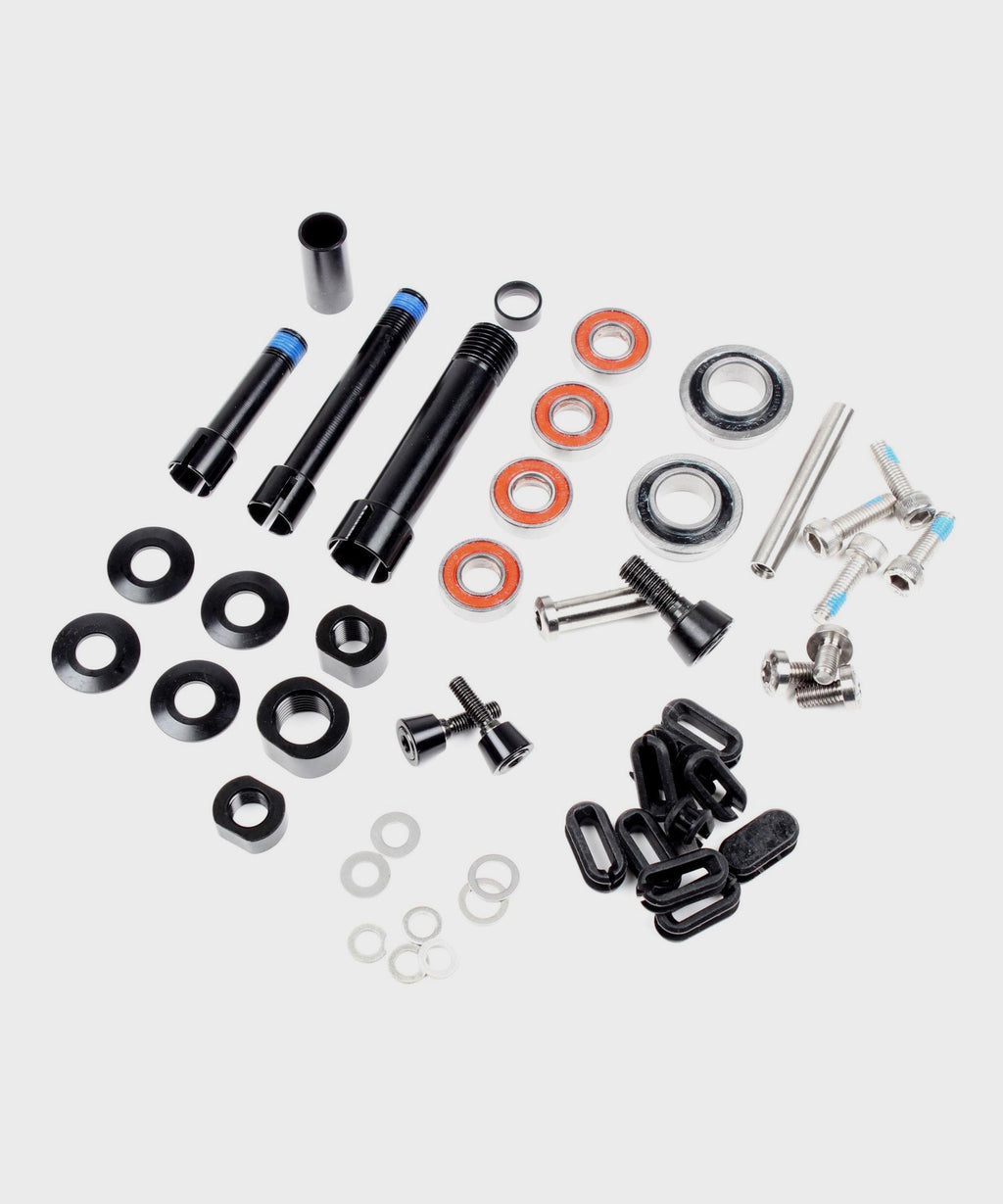 We use a Yeti designed collet system and alloy pivot axles that minimize the amount of hardware needed to assemble the frame. We also employ custom Ti bolts and hardware for mounting the shock and anywhere we can because who doesn't love a little Ti! M